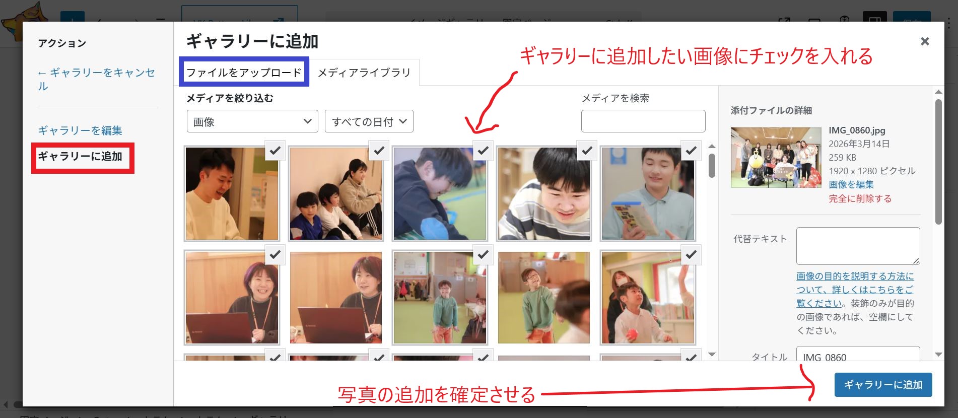 ギャラリーに追加したい画像にチェックを入れて下さい。