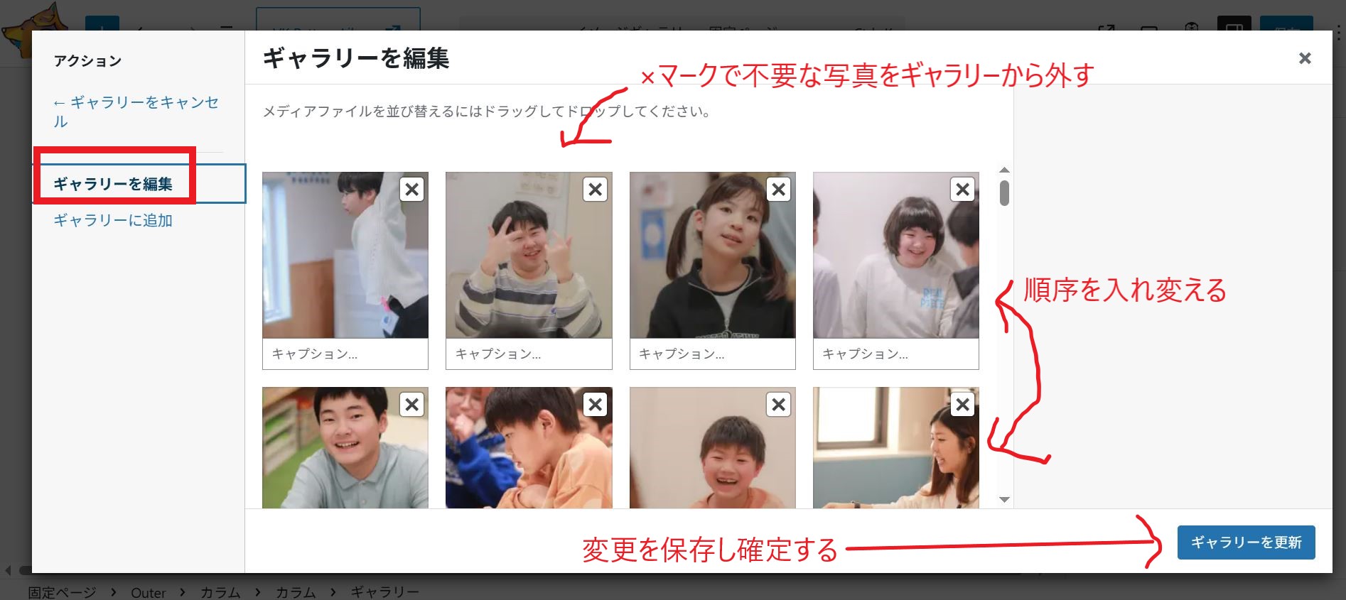 ギャラリーの編集が完了しましたら、画面右下にある【ギャラリーを更新】ボタンをクリックします。